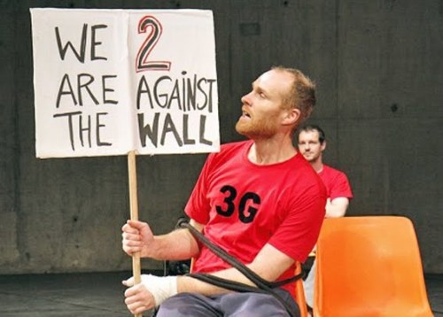 Bemerkenswert ist der Zuruf einer israelischen Darstellerin an ihre Kollegen, mit dem Stück werde lediglich der Wunsch der Deutschen nach jüdischen Tätern zum Zwecke der eigenen Entlastung erfüllt; die Deutschen liebten die Juden aber dennoch nicht. Diese ausgesprochene – und gerade dadurch dementierte – Wahrheit ist allerdings augenscheinlich nicht das Resultat einer kritischen Reflexion der eigenen Darbietung, sondern eher der ins Stück integrierte Vorwurf, der den Schauspielern in Israel begegnete und sowohl ihnen als auch dem Publikum so absurd erscheint, dass über ihn nicht weiter nachgedacht werden muss. In der sich kürzlich in Dessau an die Aufführung anschließenden Diskussionsrunde, die ihren Namen nicht verdiente, marschierten die Künstler, das Publikum und der Moderator Andreas Montag – Kulturredakteur bei der notorisch „israelkritischen“ Mitteldeutschen Zeitung und also schon von Berufs wegen Liebhaber der „Dritten Generation“ – denn auch im Gleichschritt zum Dreiklang Antizionismus, deutsche Vergangenheitsbewältigung und palästinensischer Befreiungskampf. Das inszenierte Rebellentum, ohne das kein antizionistisches Spektakel auskommt, kulminierte schließlich darin, dass die Schauspieler berichteten, sie hätten vor der Premiere in Israel „Angst vor Tomatenwürfen“ gehabt (die dann aber doch ausblieben) und sich der „Zensur“ im jüdischen Staat widersetzen müssen – die das Ensemble in dem schlichten Umstand zu erkennen glaubte, dass das israelische Außenministerium ihnen die Co-Finanzierung des Stückes versagte.