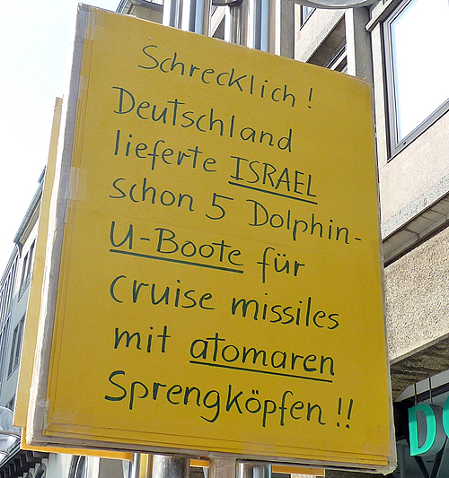 …aus ihrer Geschichte haben die Deutschen derart gründlich gelernt, dass sie Israel jetzt „als Bewährungshelfer moralisch beistehen, damit das Opfer nicht rückfällig werde“ (Wolfgang Pohrt)…