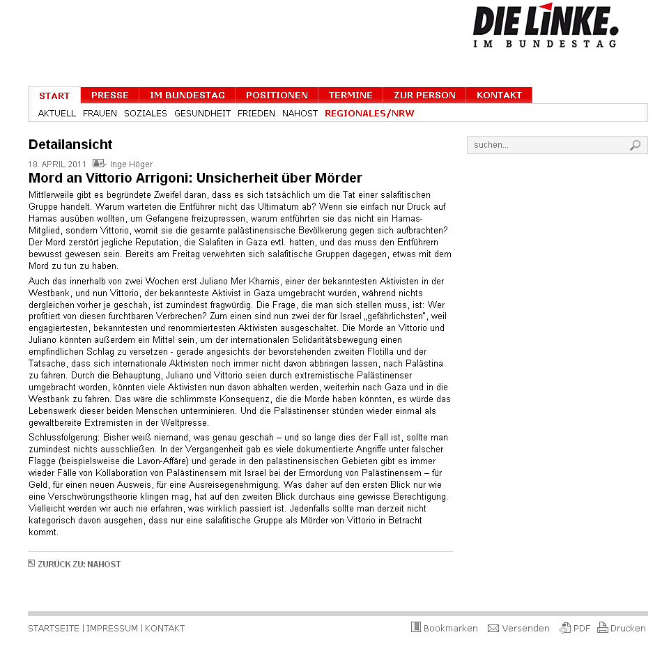 * Die Abfolge der Solid-Beiträge auf der Website (siehe den Google-Cache und den dazu gehörigen Screenshot) lässt aber den Schluss zu, dass sich der Text bereits seit dem Ende des vergangenen Jahres auf der Homepage der Duisburger Linkspartei befand.