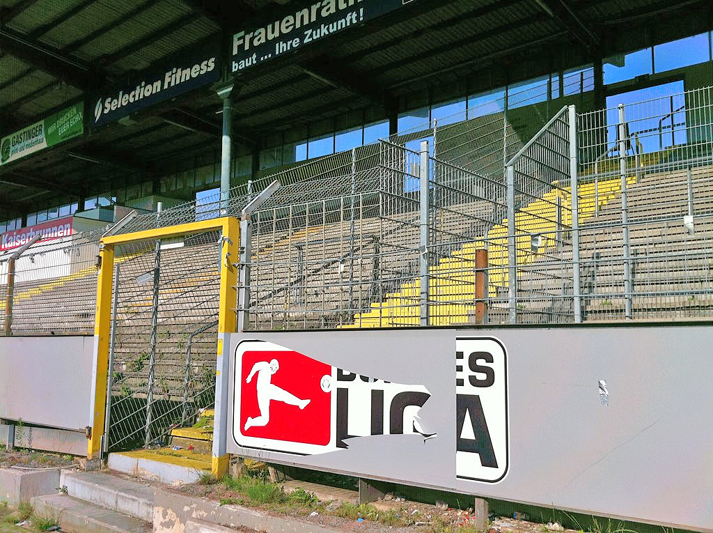 Nie mehr Bundesliga: Fast trotzig wirkt es, wie das Bundesliga-Logo sich dem Vandalismus widersetzt. Und keiner steht im S-Block, um der Leichenfledderei Einhalt zu gebieten.
