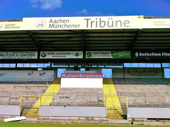Seine Nachbarn gibt es für ein paar Euro im Fanshop nebenan. Teure Plätze sind das nicht mehr. In der Sprecherkabine erwischte die Aachener Polizei übrigens vor kurzem zwei nächtliche Metalldiebe. Tagsüber hätte vermutlich niemand von ihnen Notiz genommen.
