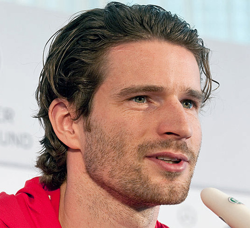 Auf Becker, Löw, Bierhoff und die Bild-Zeitung folgte Philipp Lahm, der in seinem Buch mit dem vielsagenden Titel ›Der feine Unterschied‹ ein flammendes Plädoyer für die Heterosexualität hielt und deutlich machte, wie sehr er sich von schwulen Groupies belästigt fühlt. Dass die Medien Lahms Kritik an Völler, Klinsmann & Co. dennoch stärker in den Mittelpunkt rückten als sein Bekenntnis zur Frauenliebe, ist im Grunde genommen nur damit zu erklären, dass jenseits aller Toleranzversicherungen immer noch eine gewisse Beklemmung vorherrscht, sobald sich Menschen als heterosexuell outen. Doch Arne Friedrich (Foto oben) ließ sich davon nicht beeindrucken. Vielmehr bekannte auch er, der Nationalspieler im Wartestand, sich nun öffentlich zu seiner sexuellen Neigung; ja, er behauptete gar ungewohnt angriffslustig: »Ich habe keinen Spieler erlebt, von dem ich überhaupt meinen könnte, dass der schwul ist, aber wenn es so sein sollte, wäre das auch okay.« Ihm zur Seite sprang seine Freundin Linn Rödenbeck, die in einem offenen Brief an die Bild-Zeitung – zweifellos das Flaggschiff in Sachen Hetero-Offensive – schrieb: »Ich habe keine Lust, irgendetwas zu rechtfertigen. Aber scheinbar« – genauer gesagt: anscheinend – »muss es einmal schwarz auf weiß stehen. Und vorab eine Entschuldigung an alle, die nun aus allen Wolken fallen. Nein, Arne ist nicht schwul.«