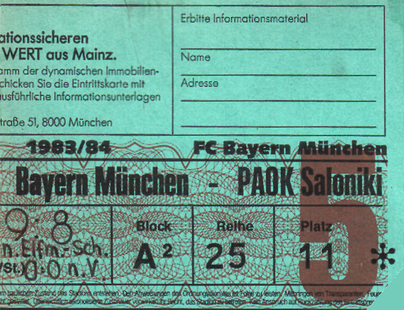Eine Partie von ihm ist mir ganz besonders in Erinnerung geblieben, eine, bei der ich auch im Stadion war. Saison 1983/84, Uefa-Pokal, zweite Runde, Rückspiel gegen PAOK Saloniki. Der griechische Klub wurde seinerzeit von Pál Csernai trainiert, der nicht mal ein halbes Jahr zuvor noch bei den Bayern auf der Bank gesessen hatte, bevor er kurz vor dem Ende der Saison entlassen und durch seinen Assistenten Reinhard Saftig ersetzt wurde. Das Hinspiel war torlos geblieben, die Bayern hatten sich die Zähne an der PAOK-Defensive ausgebissen. Die (Herbst-)Ferien verbrachte ich mit meinen Eltern und meinem Bruder wie so oft am Ammersee, was mir die Möglichkeit bot, das Rückspiel live im Olympiastadion verfolgen zu können. Und obwohl ich erst vierzehn war, durfte ich nach tagelangem Drängeln und Quengeln alleine dorthin – für mich eine Premiere, und zwar eine, die vor allem meine Mutter noch bereuen sollte.