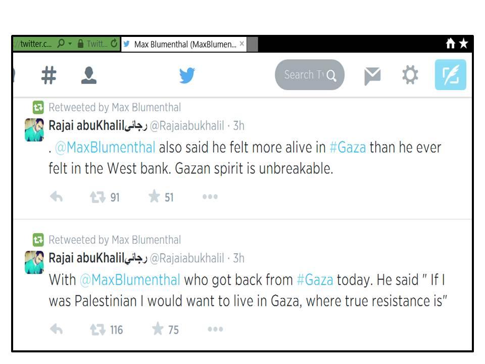 Gysi hatte zuvor dafür gesorgt, dass eine Veranstaltung mit dem amerikanischen Publizisten Max Blumenthal und dem in Israel lebenden kanadischen Journalisten David Sheen zu »Israels Kriegsverbrechen in Gaza« nicht, wie von Höger und Groth eigentlich geplant, im Sitzungssaal der Linksfraktion stattfindet. Der Grund für diese Absage: Blumenthal bezeichnet israelische Soldaten in seinem jüngsten Buch »Goliath« als »Judäo-Nazis« und belegt auch die israelische Regierung häufig mit NS-Vokabular. Das Simon Wiesenthal Center hat diese Äußerungen deshalb in seine »Top Ten« der schlimmsten antisemitischen und antiisraelischen Verunglimpfungen des Jahres 2013 aufgenommen. Zuletzt setzte Blumenthal den Staat Israel zudem mehrfach mit der Terrororganisation »Islamischer Staat« gleich und bewunderte den »echten Widerstand« im von der Hamas beherrschten Gazastreifen. Auch David Sheen bemüht gern Vergleiche mit dem Nationalsozialismus, wenn es darum geht, Israel zu dämonisieren.